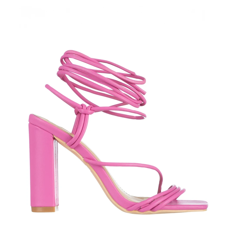 Дамски сандали с ток циклама от текстилен материал Atrina