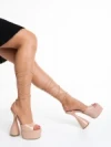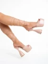 Дамски сандали с ток розови от текстилен материал Lavania