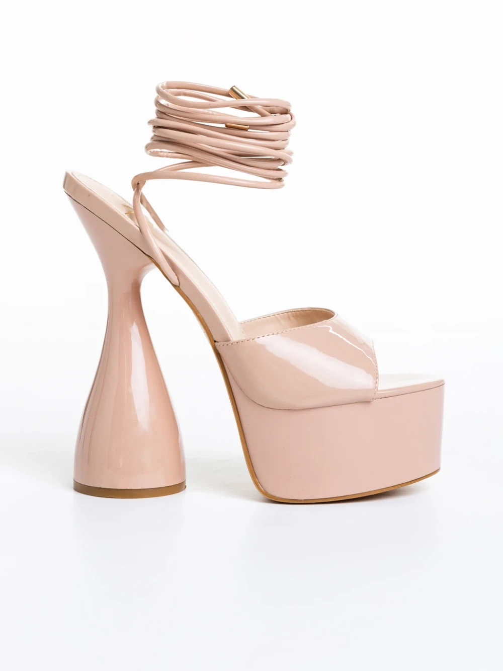 Дамски сандали тъмно бежови от лачена еко кожа Narine
