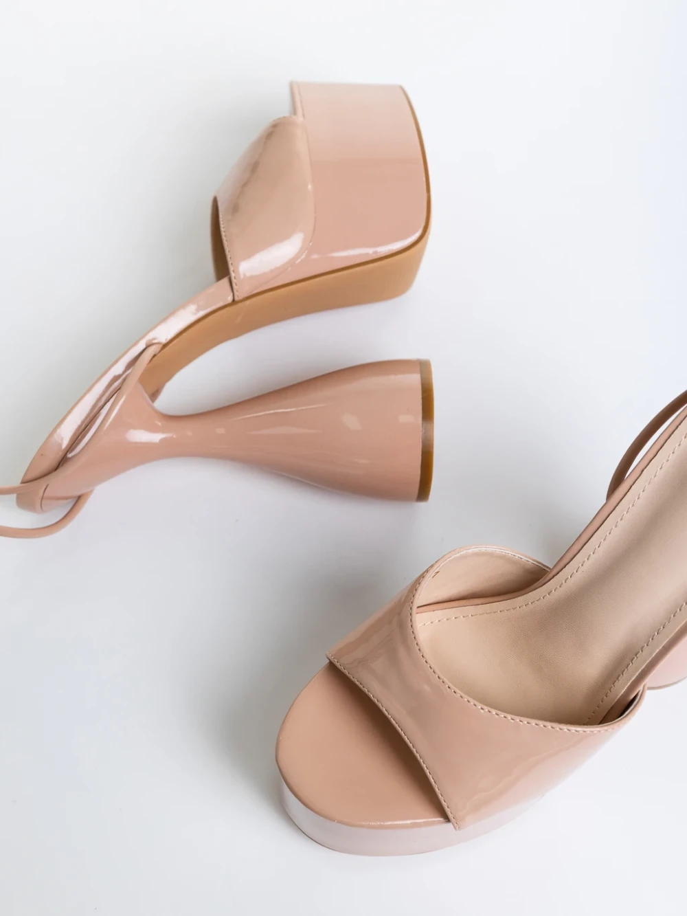 Дамски сандали  тъмно бежови от  лачена еко кожа  Narine