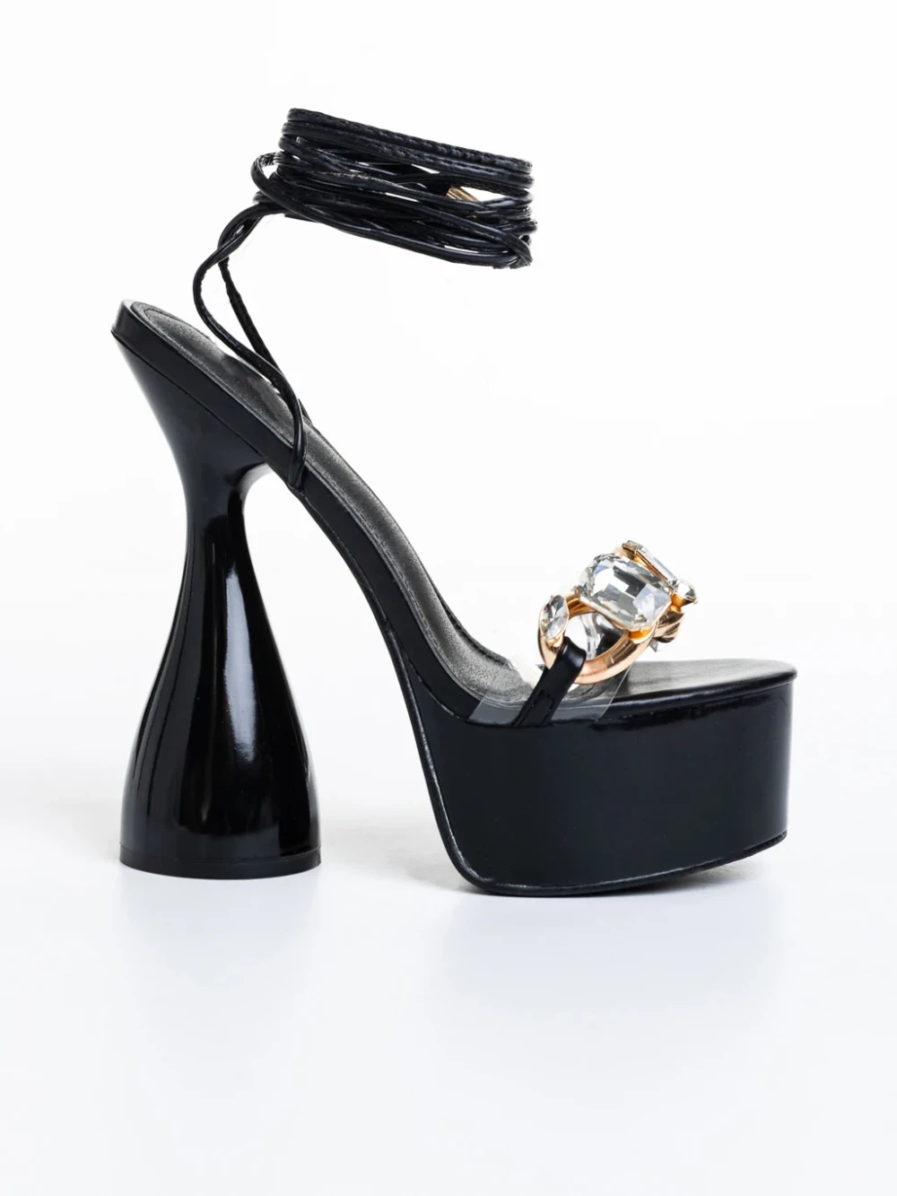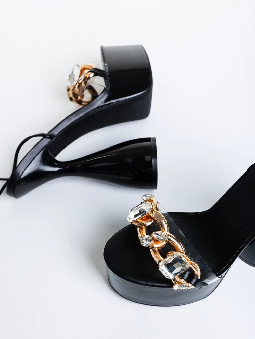 Дамски сандали черни от лачена еко кожа Natisha Информация за продукта