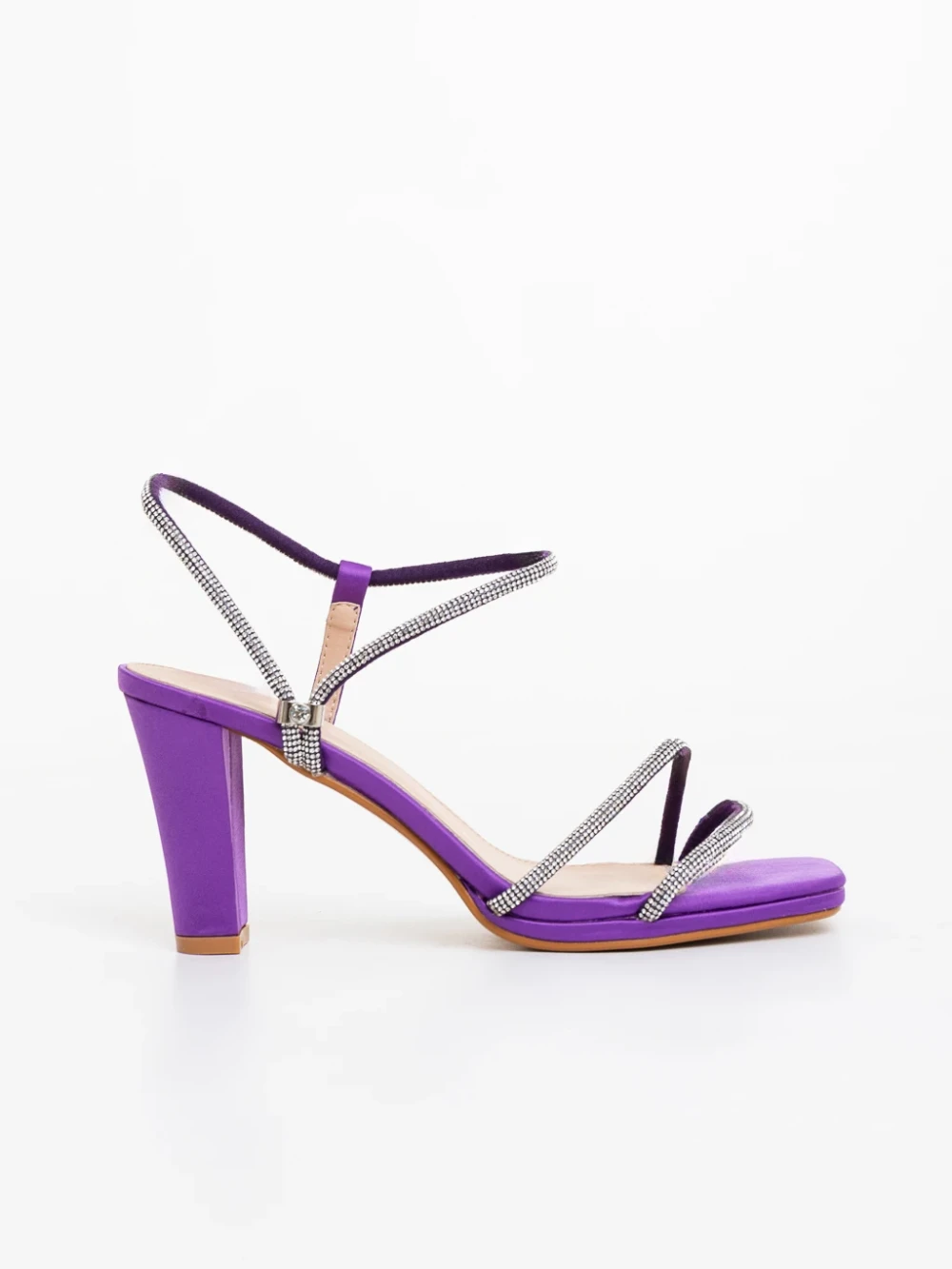 Дамски сандали с ток лилави от текстилен материал Delenia