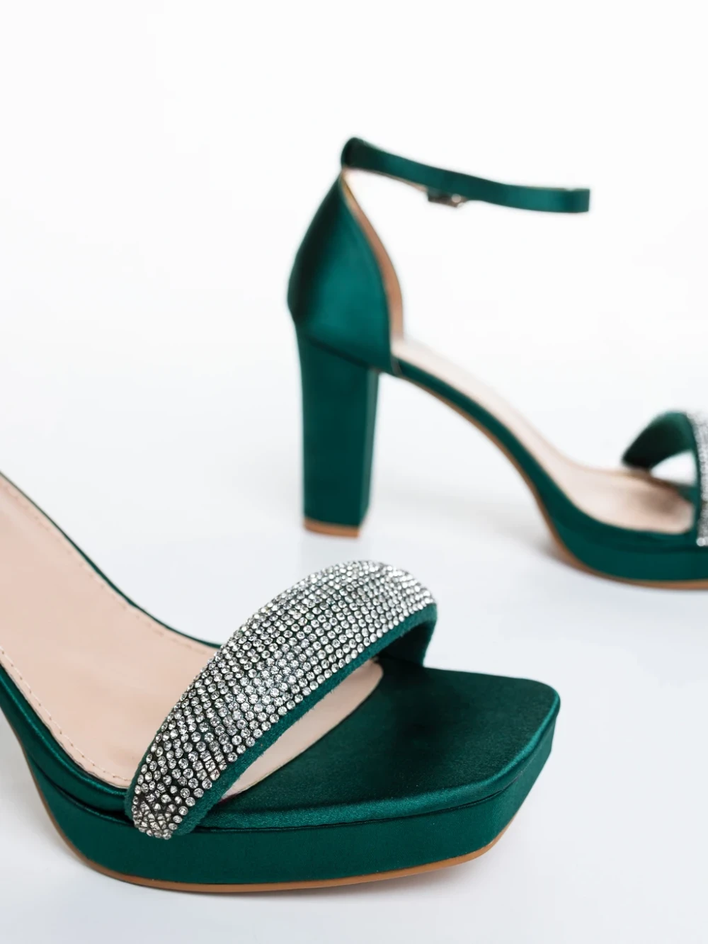 Дамски сандали с ток зелени от текстилен материал Menara Информация за продукта