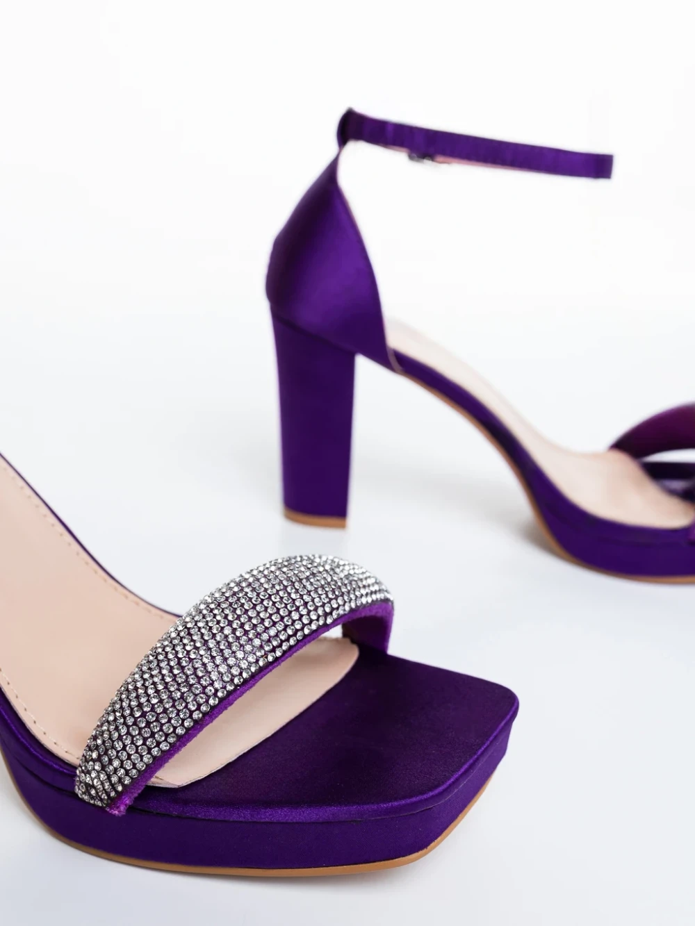 Дамски сандали с ток лилави от текстилен материал Menara