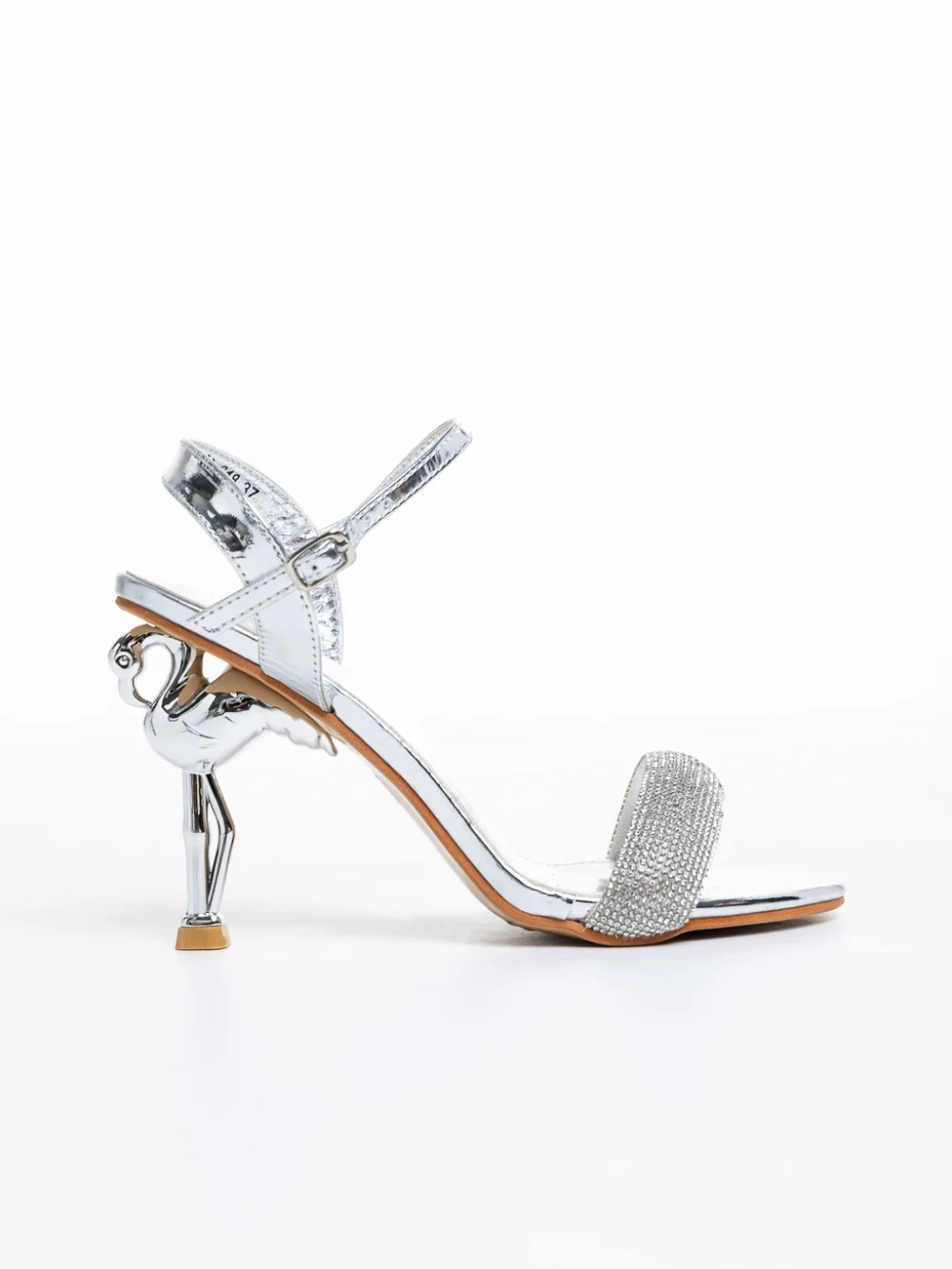 Дамски сандали с ток сребристи от лачена екологична кожа Oliara