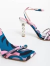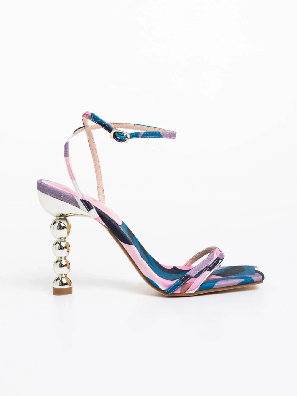 Дамски сандали с ток циклама от текстилен материал Atrina