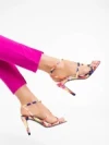 Дамски сандали с ток сребристи от лачена екологична кожа Nyana