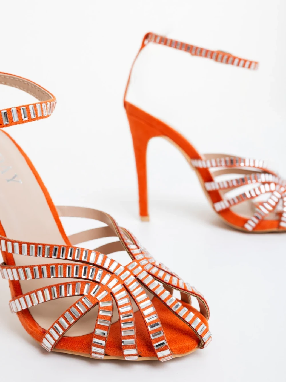 Дамски сандали с ток оранжеви от текстилен материал Atrina