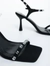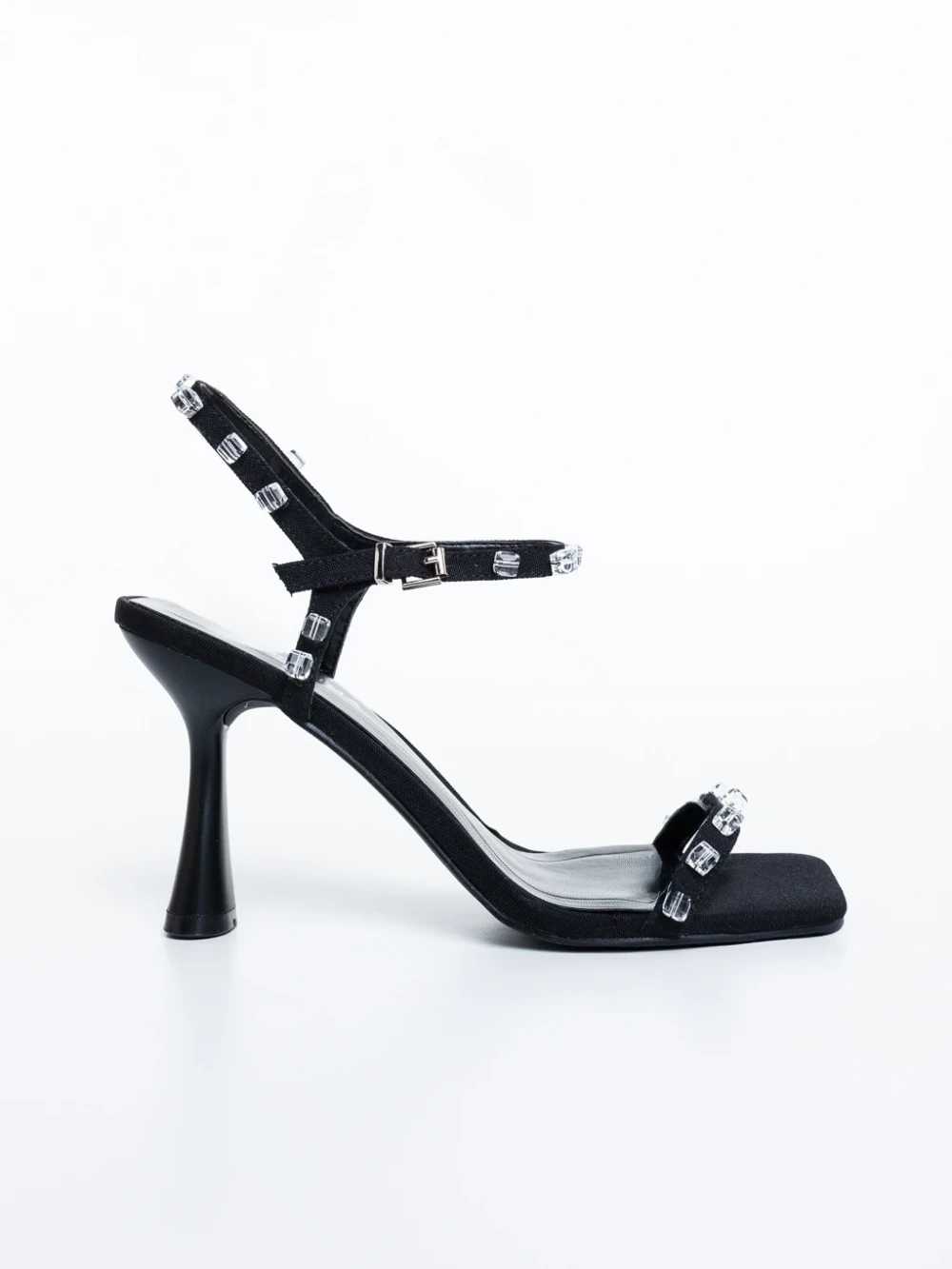 Дамски сандали с ток черни от текстилен материал Anzira Информация за продукта
