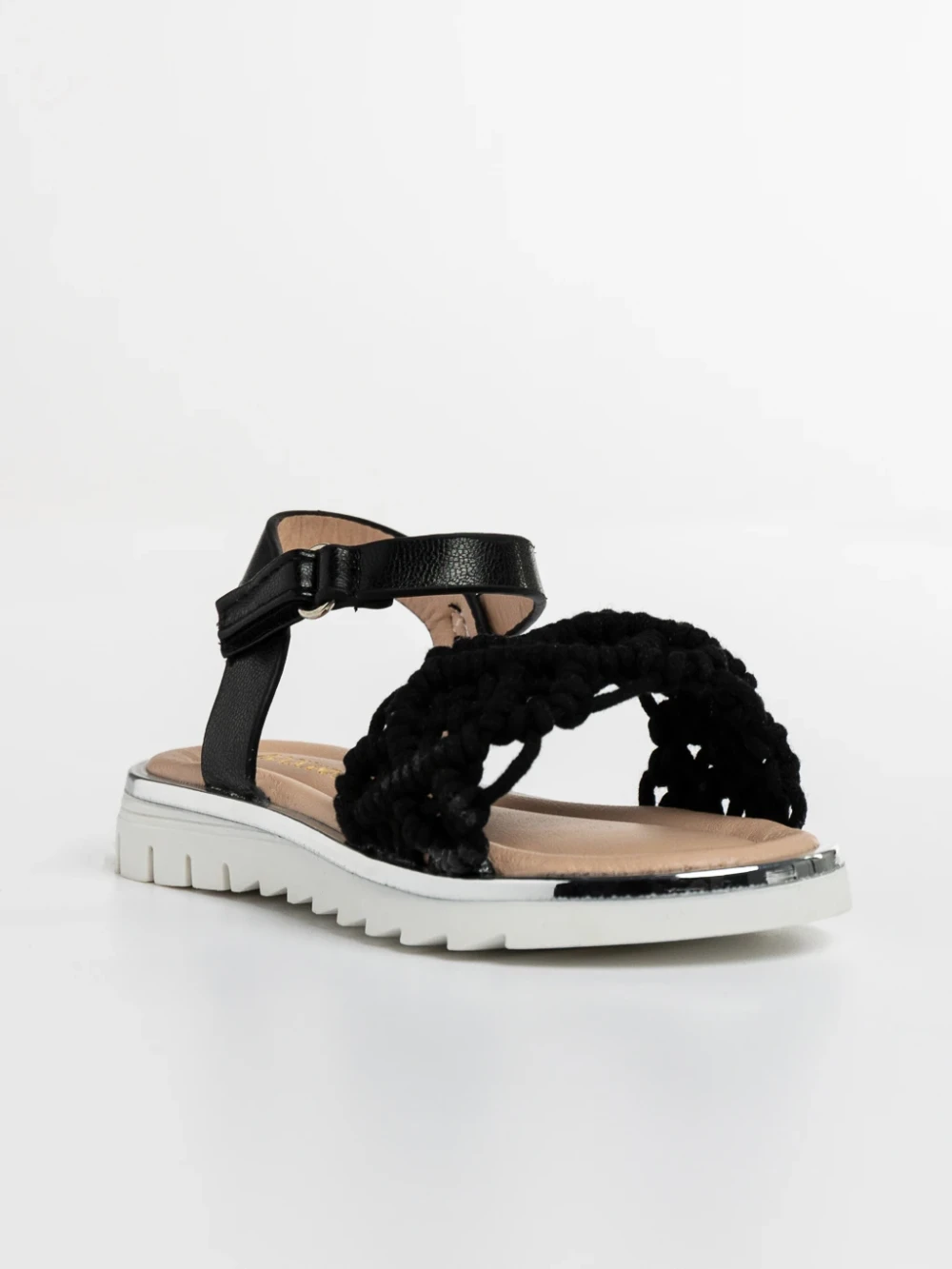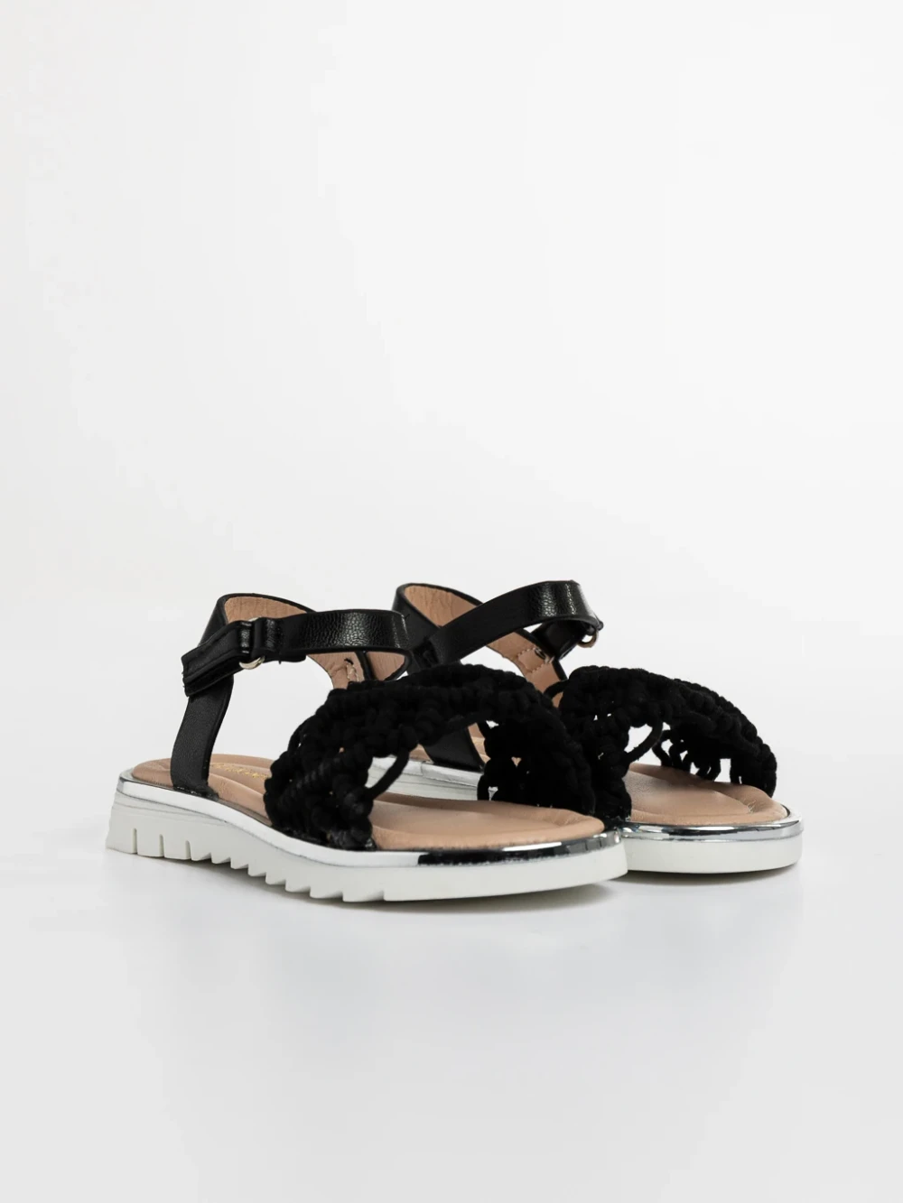 Детски сандали бели от текстилен материал и еко кожа Cabria