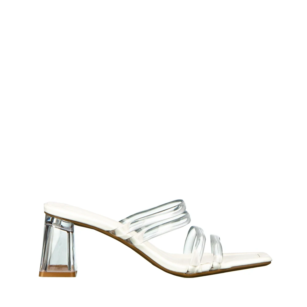 Дамски чехли с ток белиот еко кожа Ranya