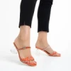 Дамски чехли с ток оранжеви от еко кожа Cameron