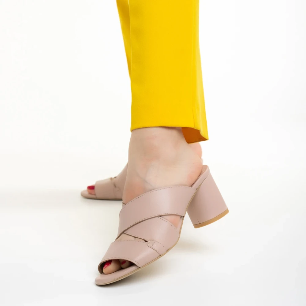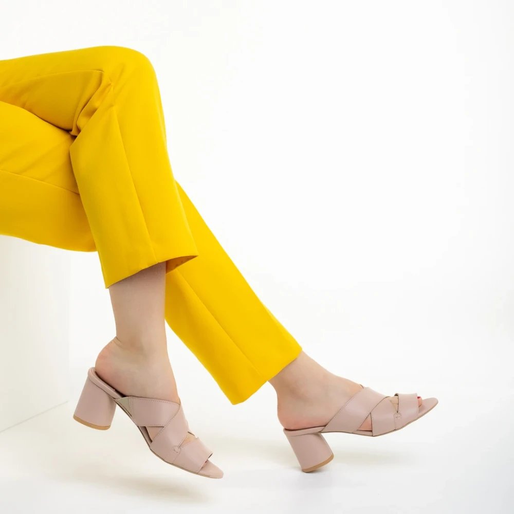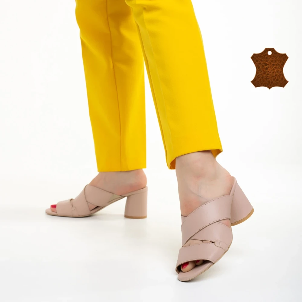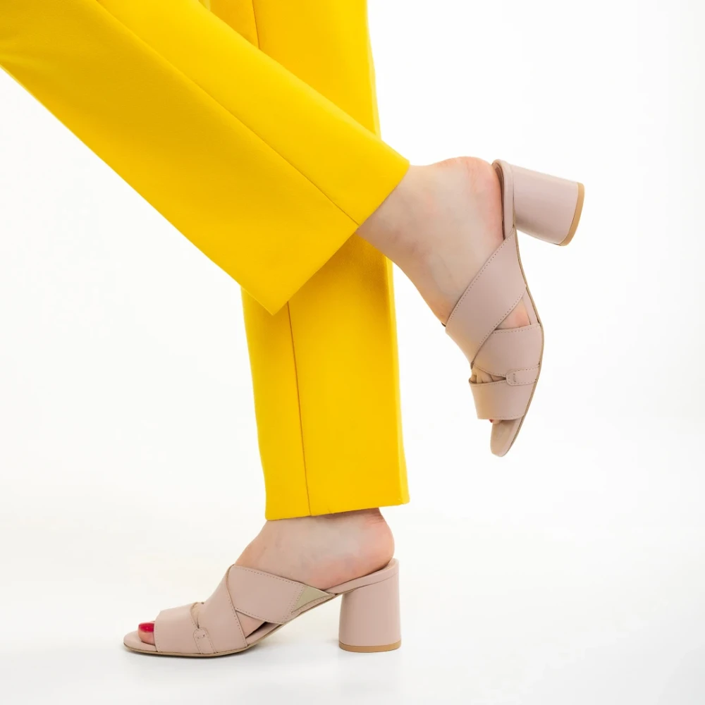 Дамско сабо телесен цвят от екологична кожа и текстилен материал Shamyla
