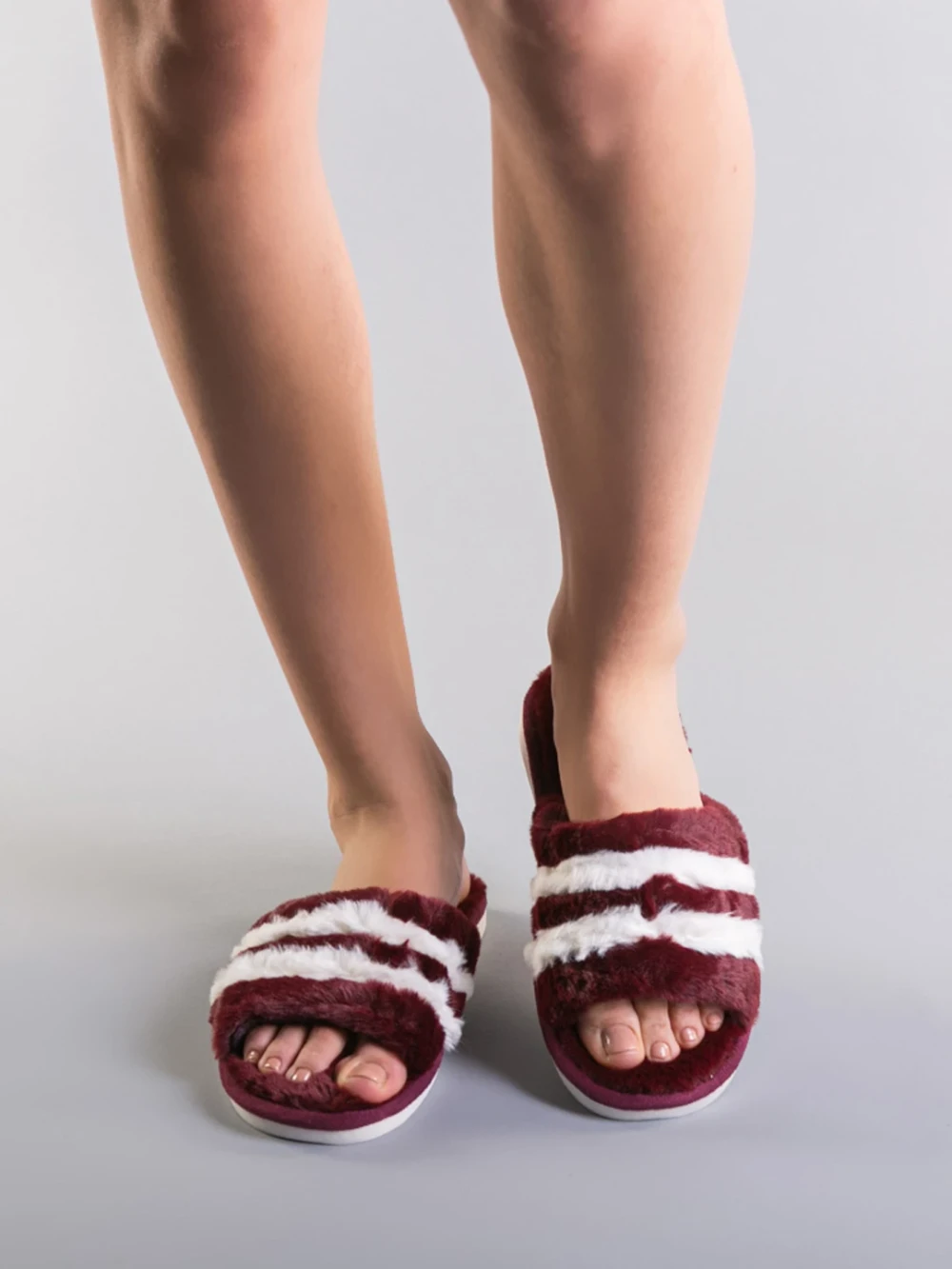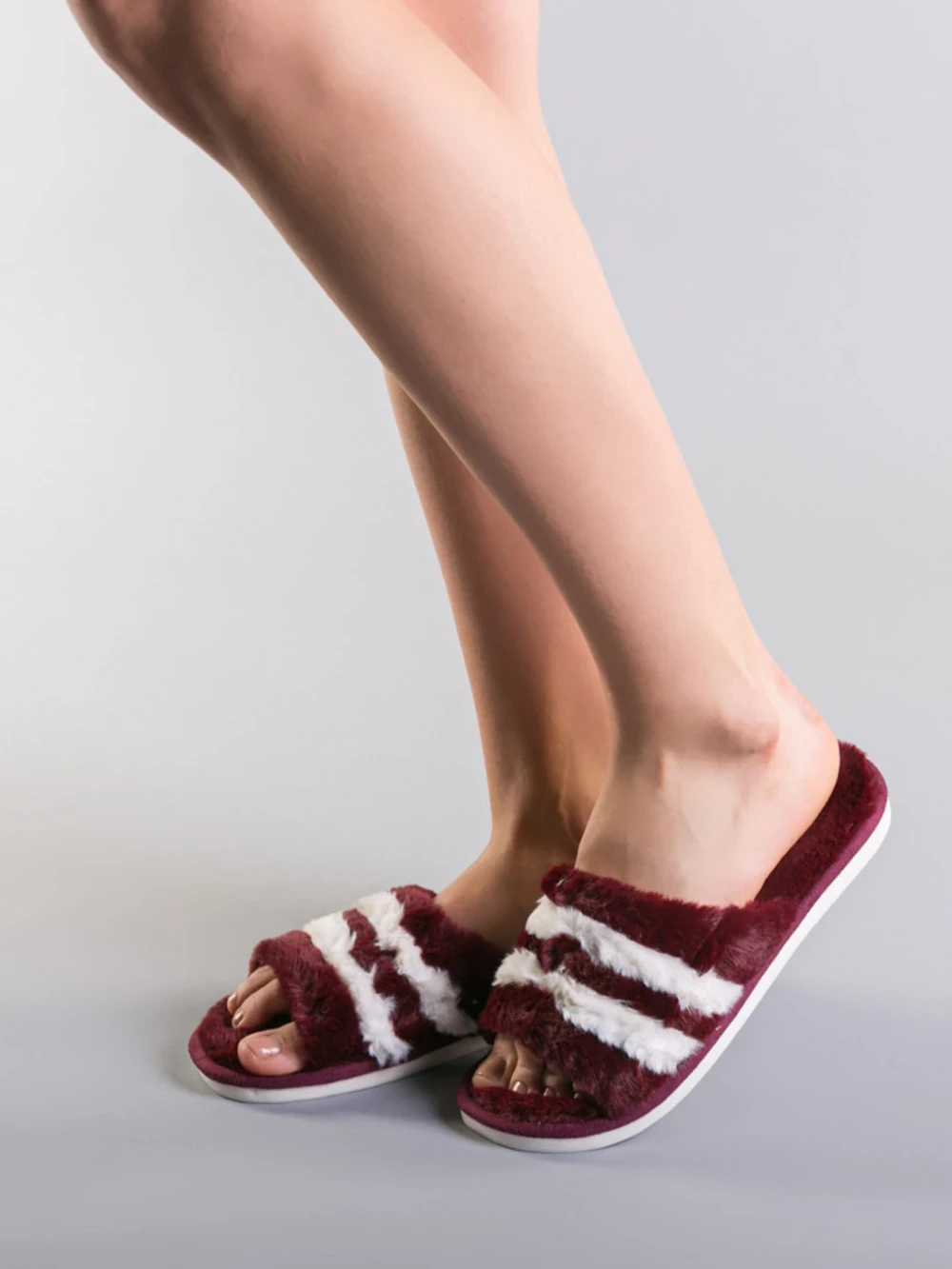 Дамски чехли бели от синтетична козина Reneka
