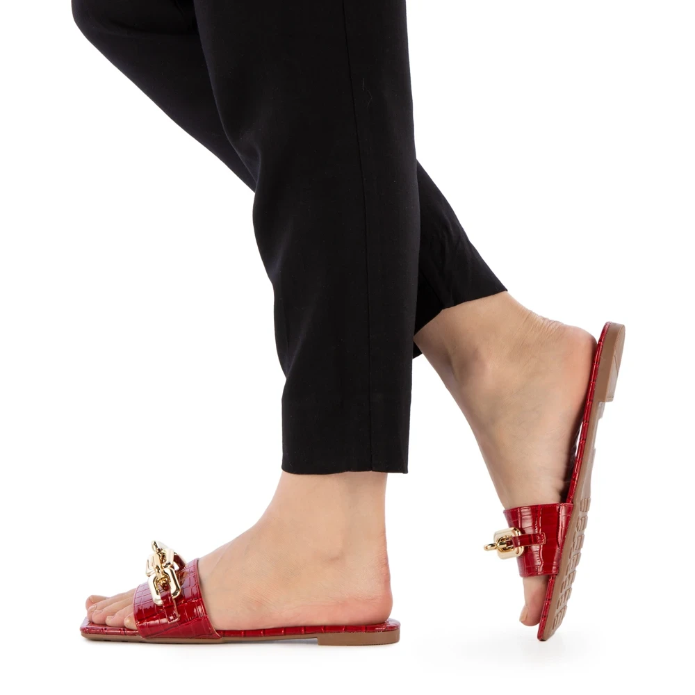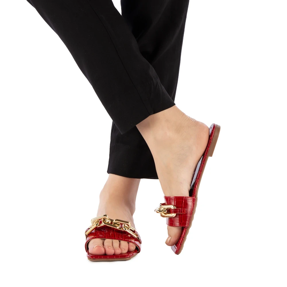 Дамски чехли тъмнобежови от текстилен материал Temaria