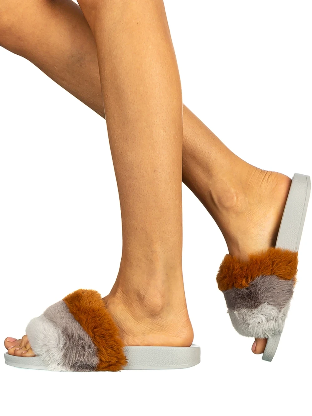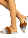 Дамски чехли тъмно бежови от еко кожа Gerel