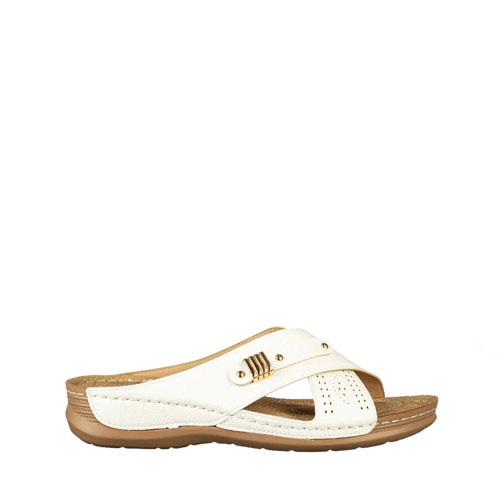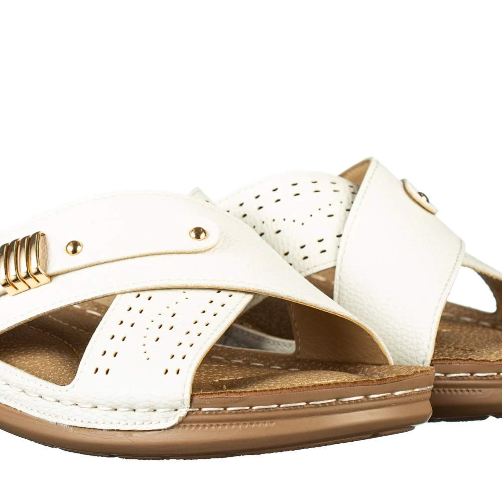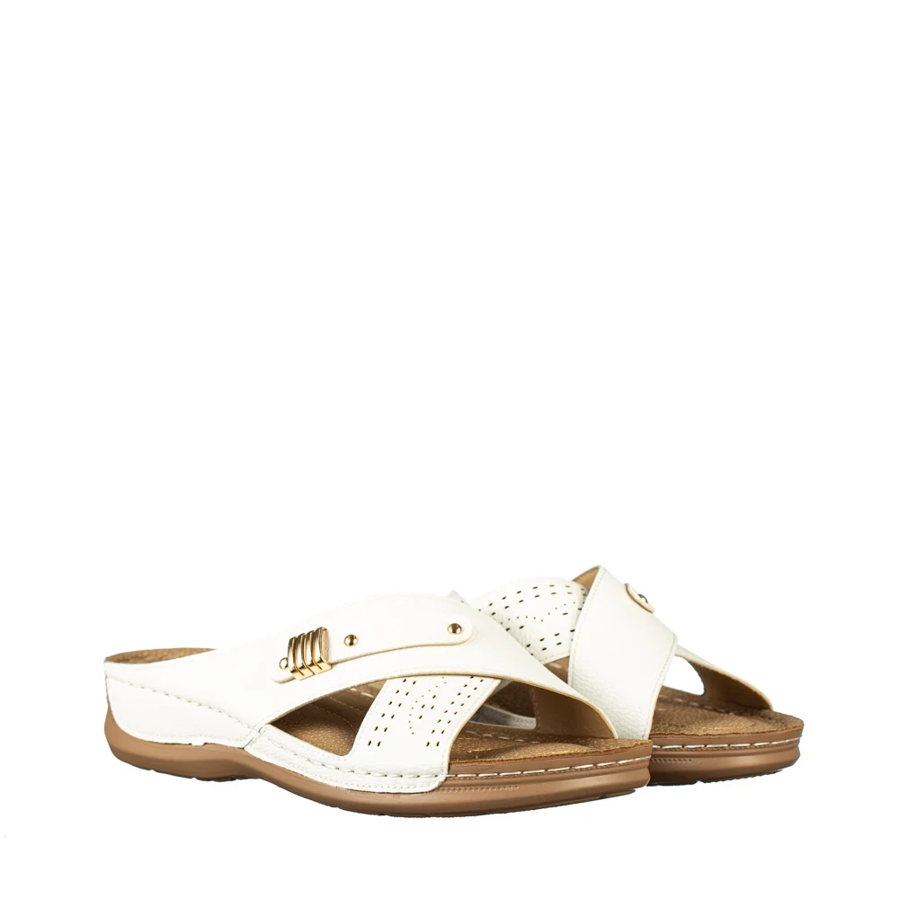 Дамски чехли бели от еко кожа Aveza