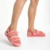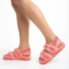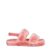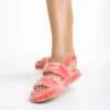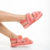 Дамски чехли розови от синтетична козина Reneka