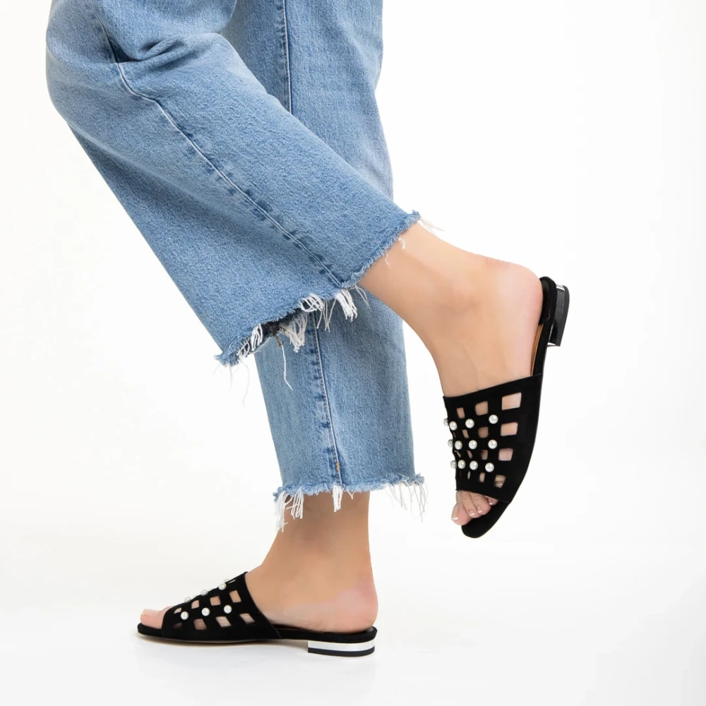 Дамски чехли Marco черни от естествена кожа Elba