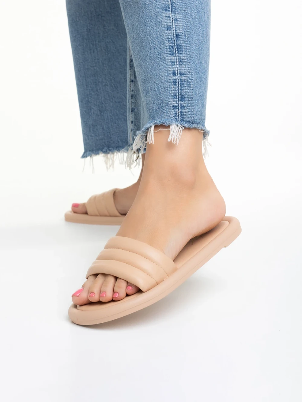 Дамски чехли бежови от еко кожа Caela