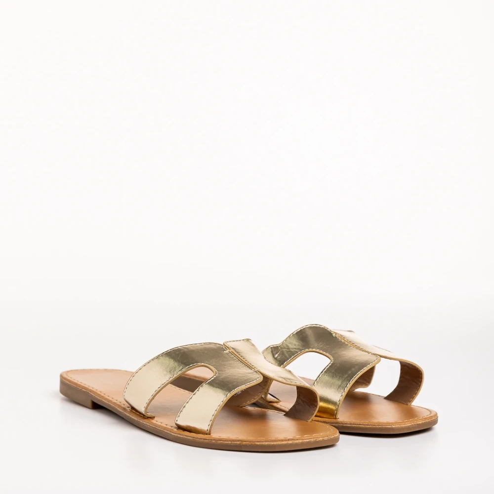 Дамски чехли  златисти  от еко кожа  Aveza