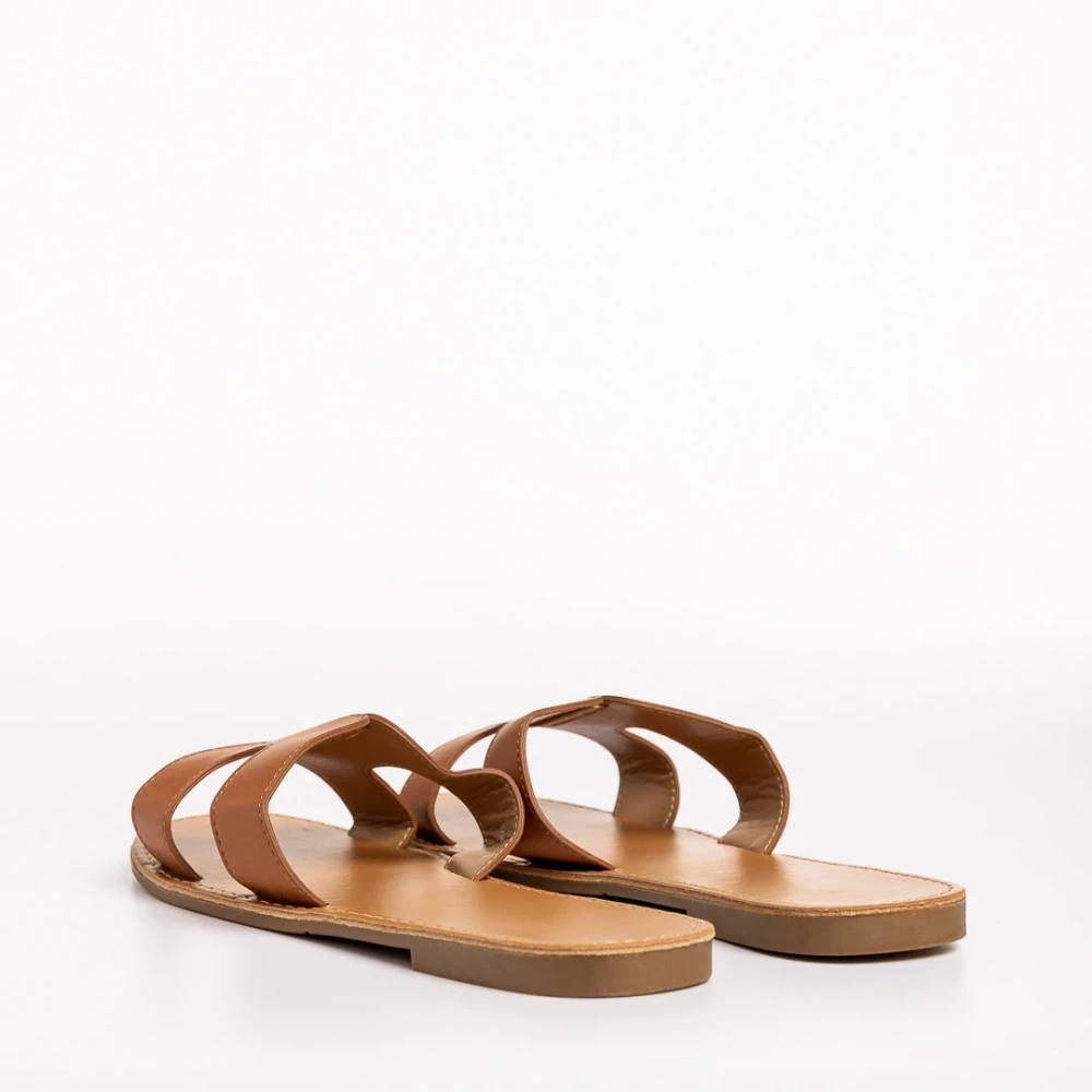Дамски чехли тъмно бежови от еко кожа Gerel