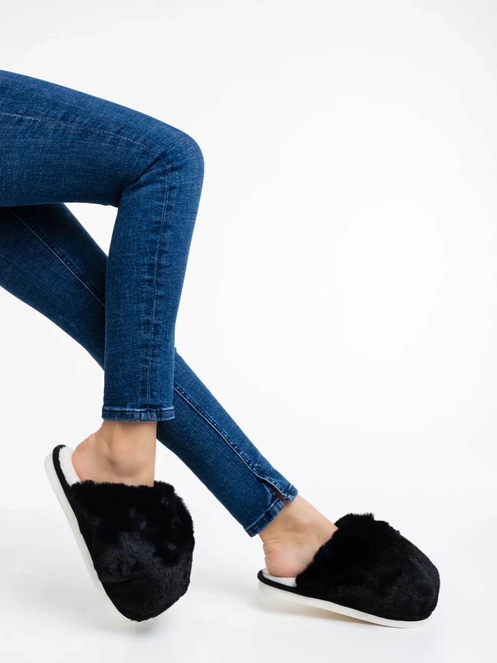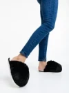 Дамски чехли черни от синтетичен пух Donisha