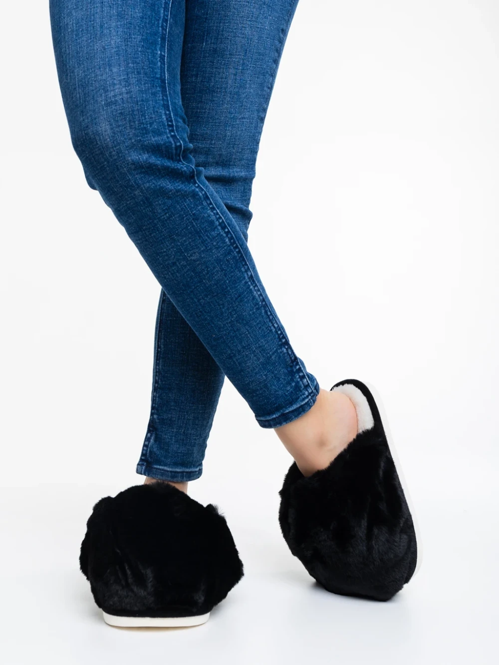 Дамски чехли черни от синтетичен пух Donisha Информация за продукта