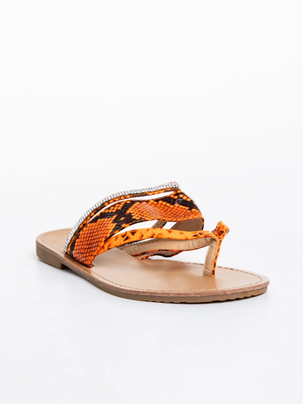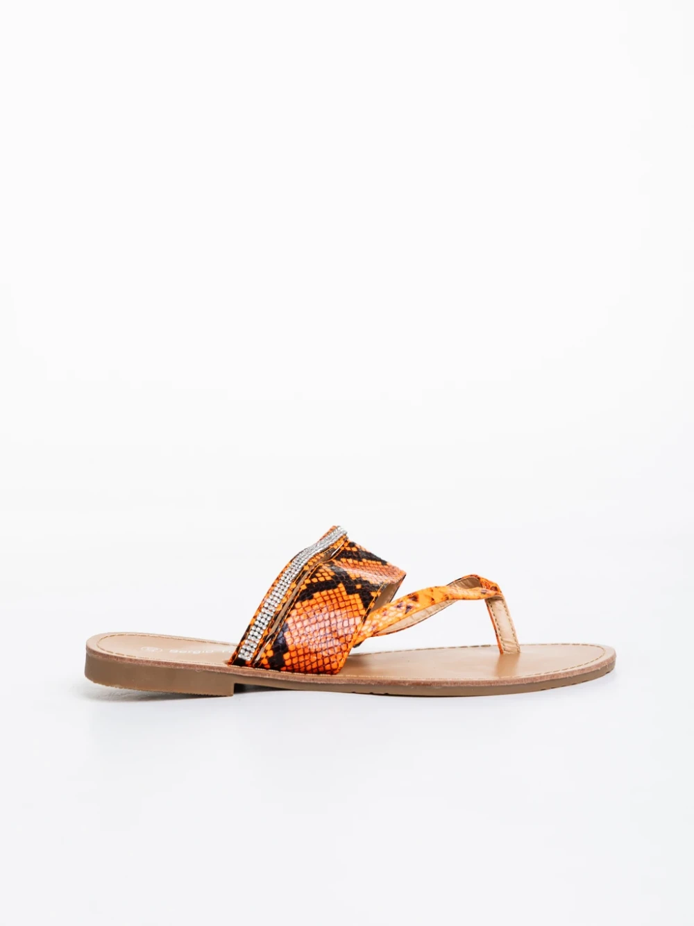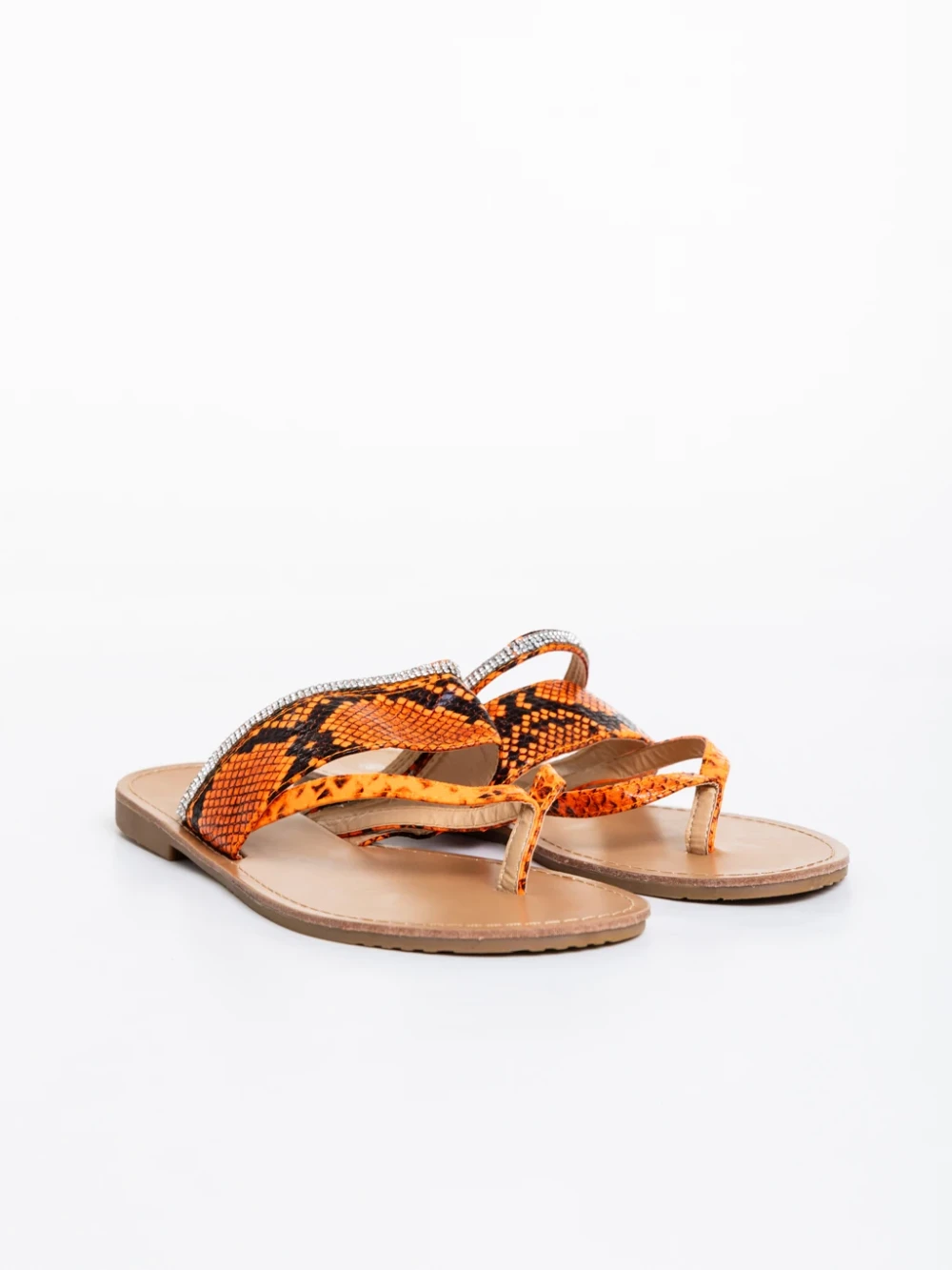 Дамски чехли оранжеви от екологична лачена кожа Savanna