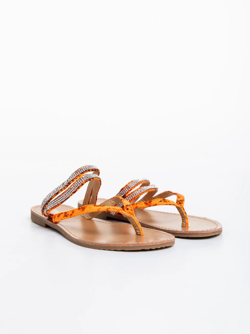 Дамски чехли оранжеви от екологична лачена кожа Sanziana