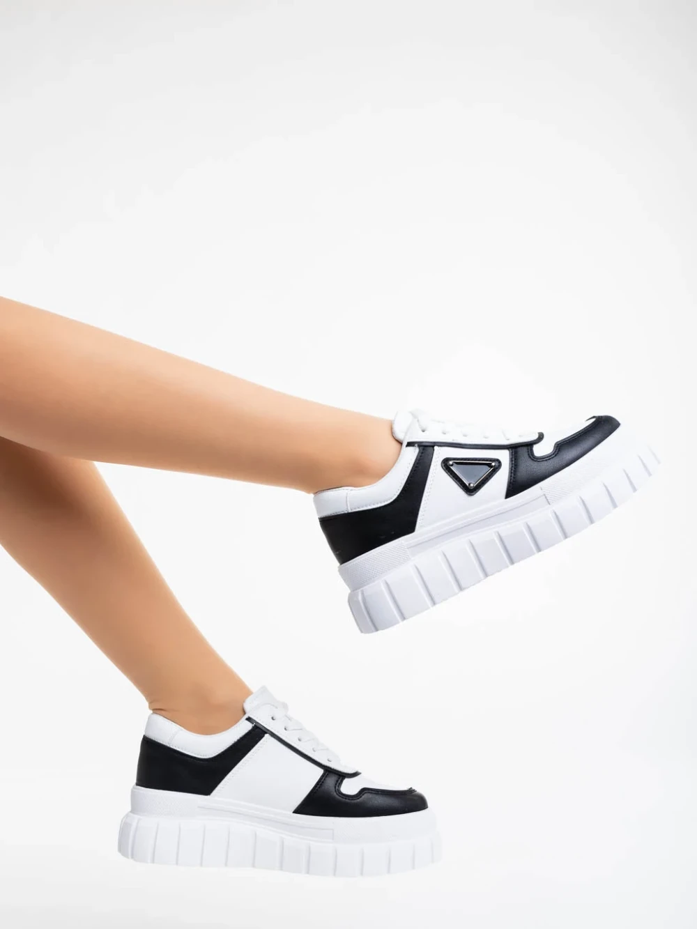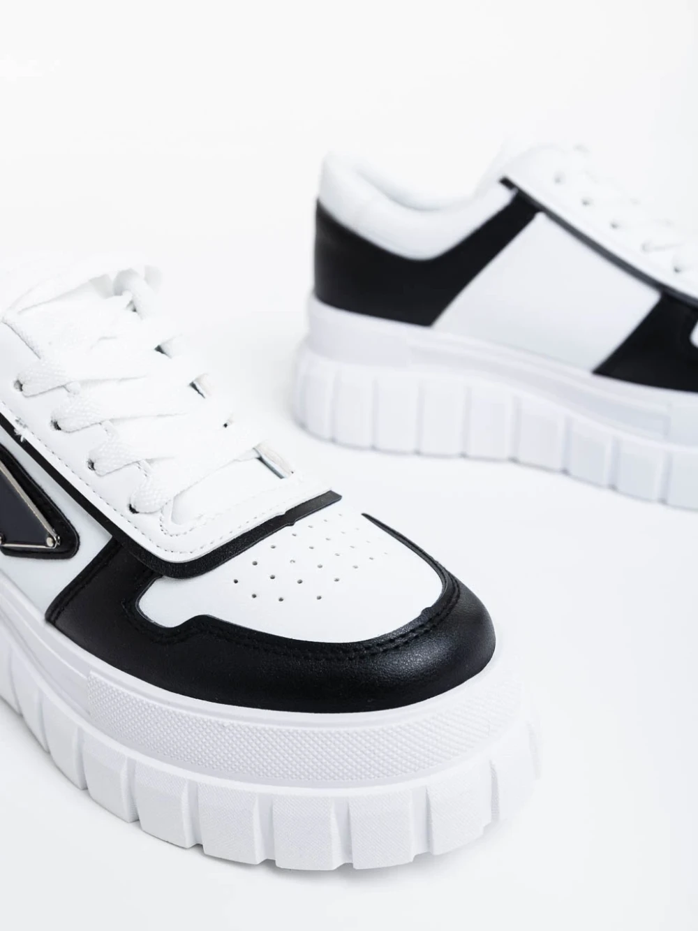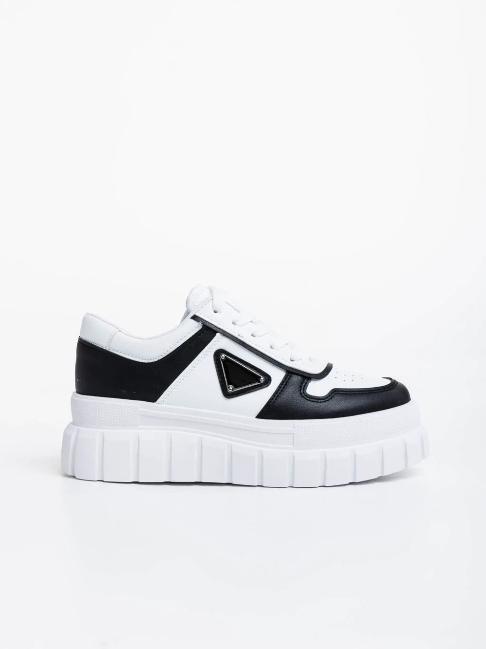 Дамски спортни обувки бели с черно от екологична кожа  Retta
