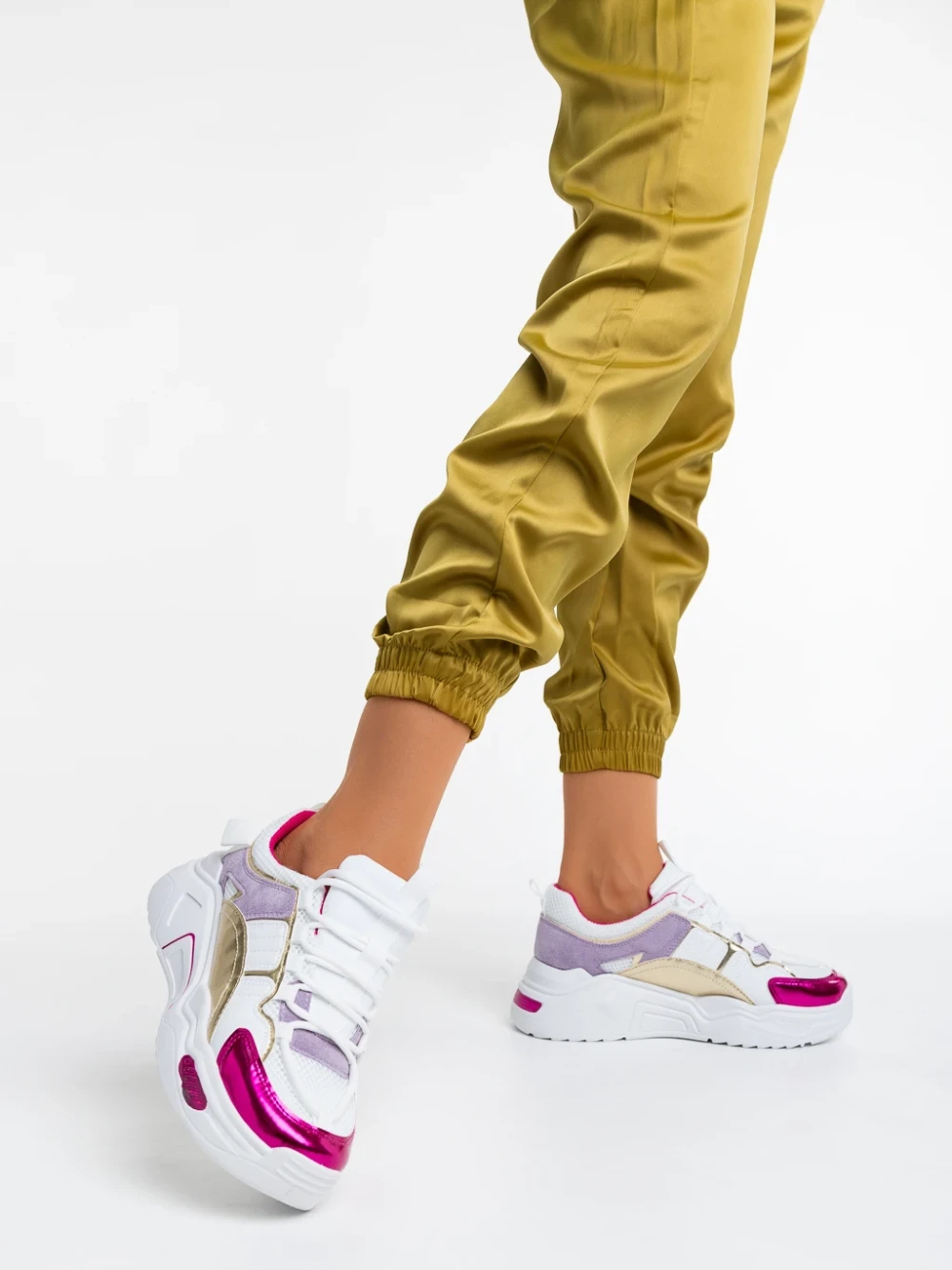 Дамски спортни обувки бели с цикламени от еко кожа и текстилен материал Reena Информация за продукта