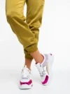 Дамски спортни обувки бели с цикламени от еко кожа и текстилен материал Reena