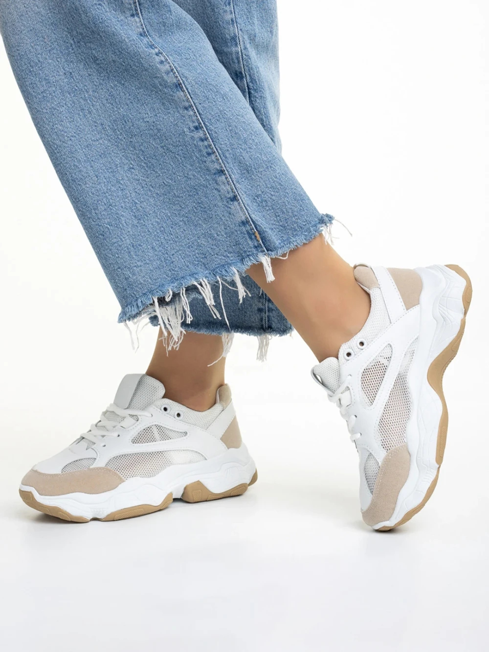 Дамски спортни обувки бели с златисто от еко кожа Angelien