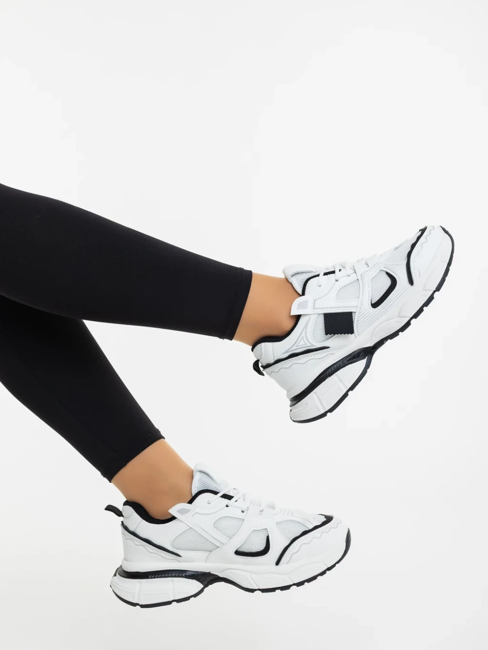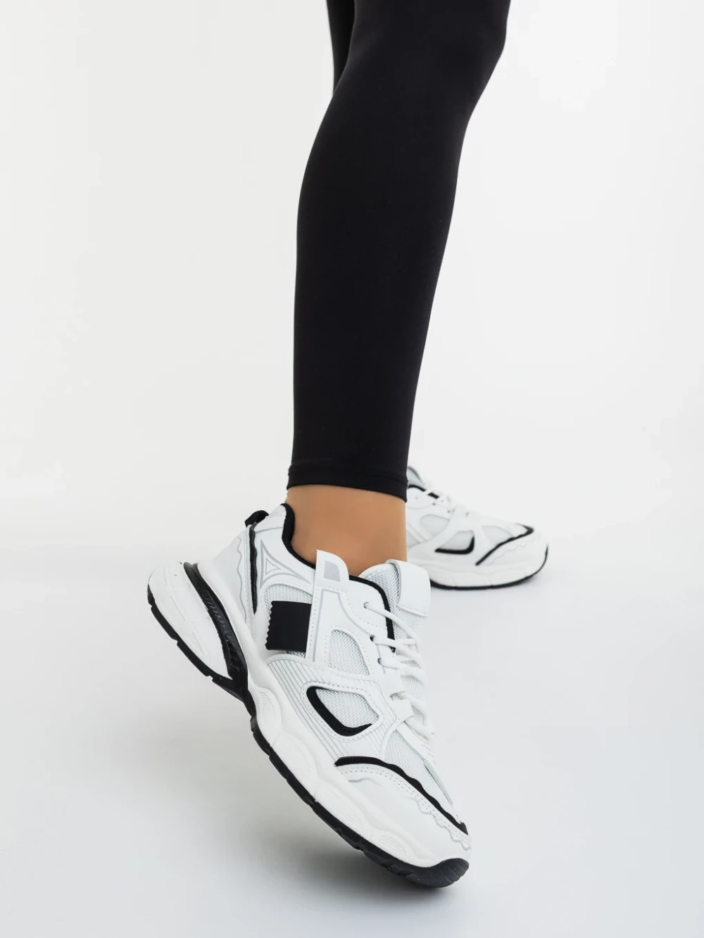Дамски спортни обувки бели с черно от екологична кожа и текстилен материал Revana Информация за продукта