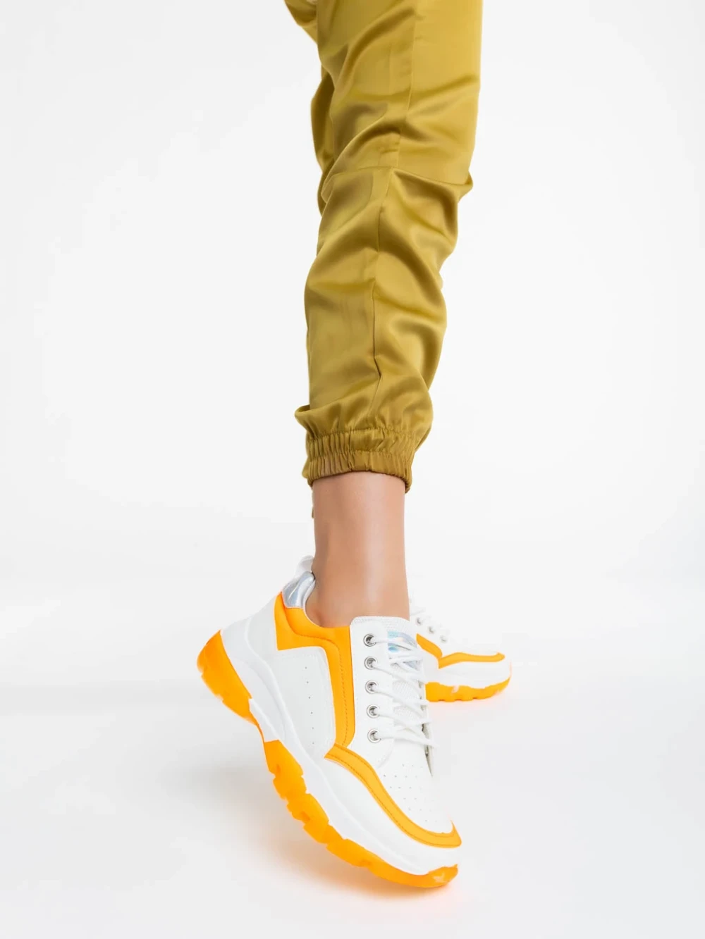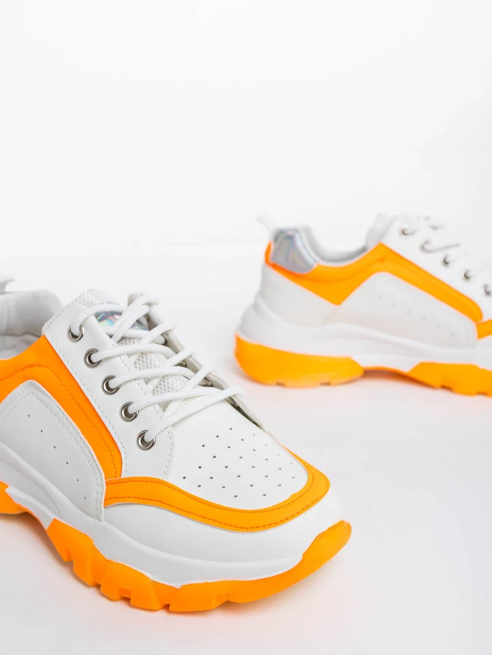 Дамски спортни обувки бели с оранжево от екологична кожа Mona Информация за продукта