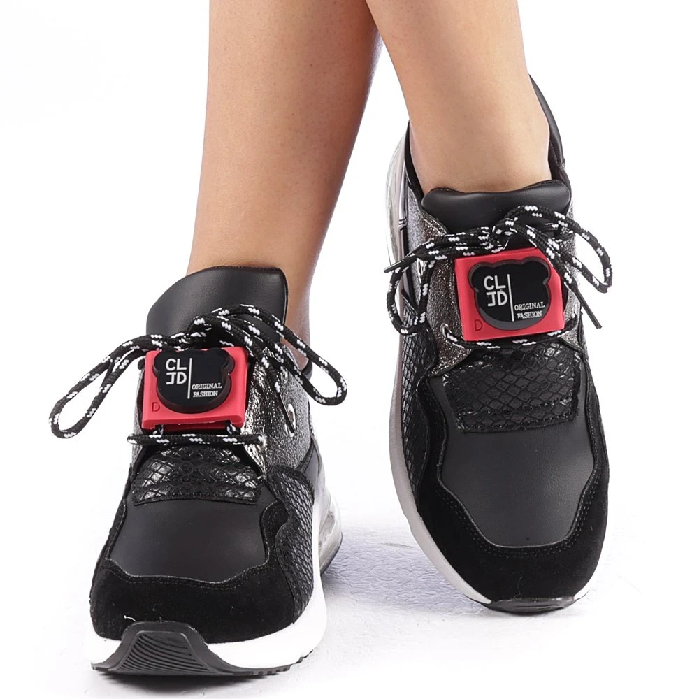 Дамски спортни обувки бели с черно от екологична кожа и текстилен материал Revana
