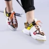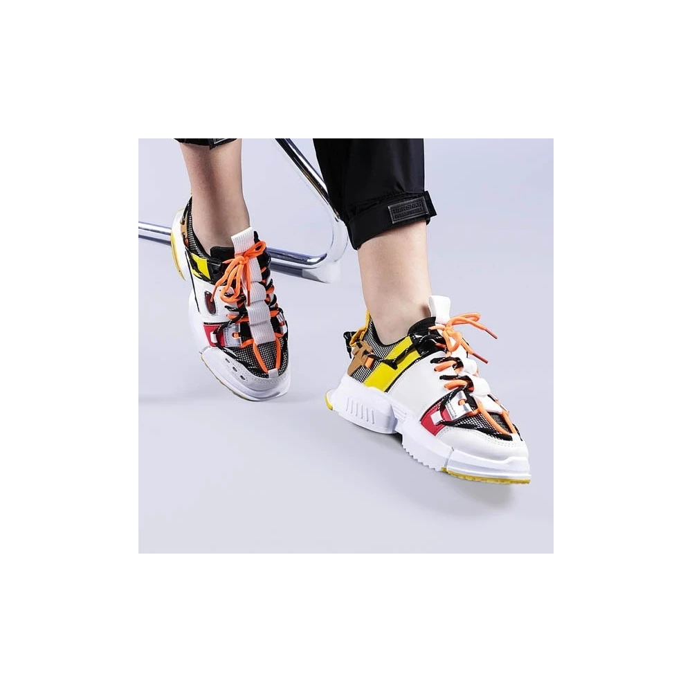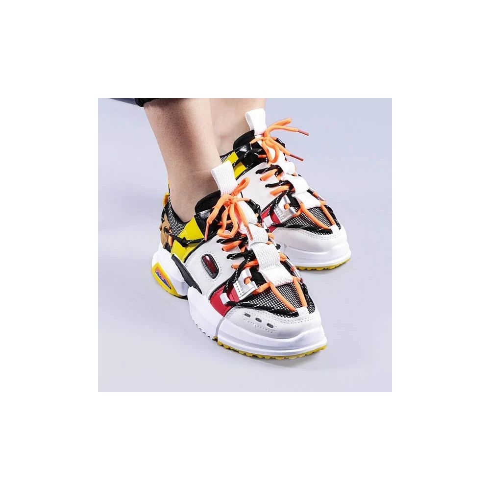Дамски спортни обувки бели с жълто от екологична кожа Mona