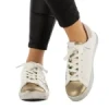 Дамски спортни обувки бели с оранжево от екологична кожа Mona