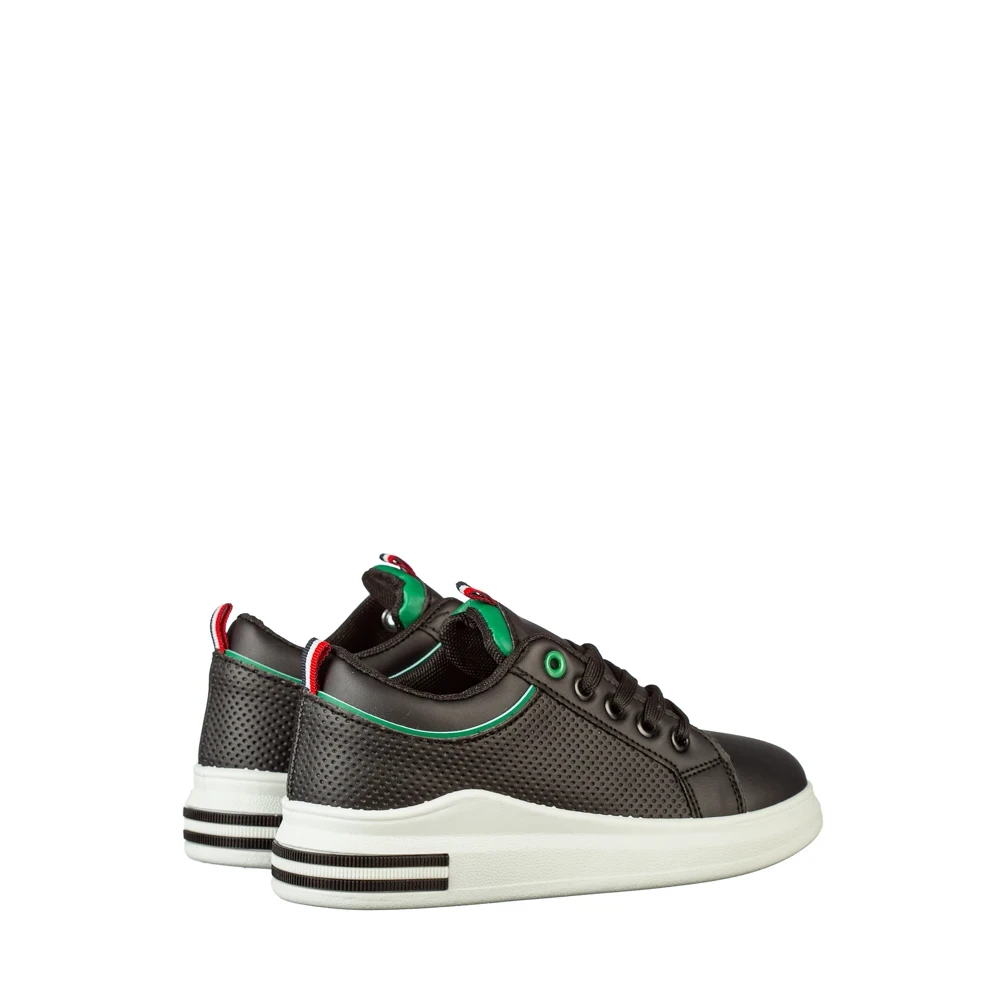 Детски спортни обувки черни със зелено от еко кожа Rumaysa