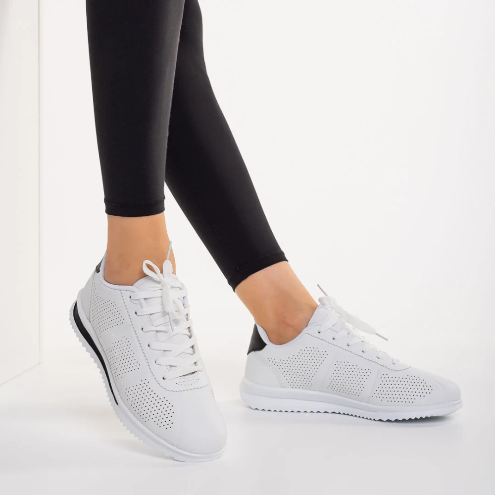 Дамски спортни обувки бели с черно от еко кожа Jesika