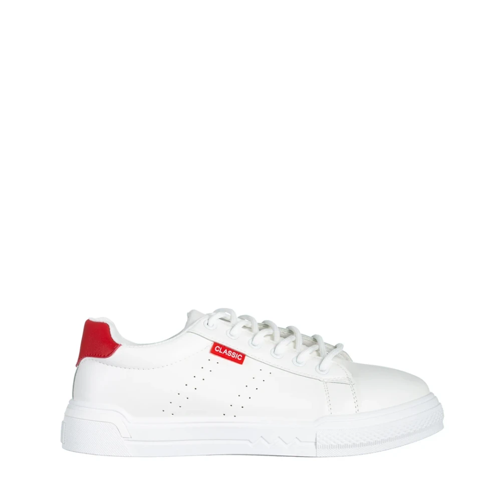 Дамски спортни обувки бели с червено от еко кожа Ruba