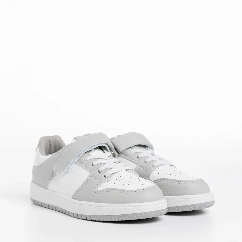 Детски спортни обувки сиви с бяло от еко кожа Buddy