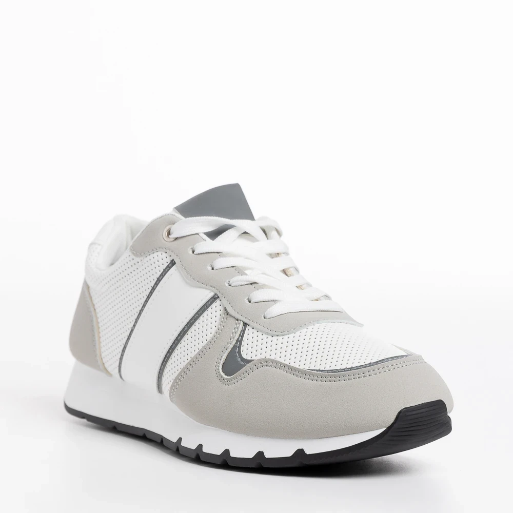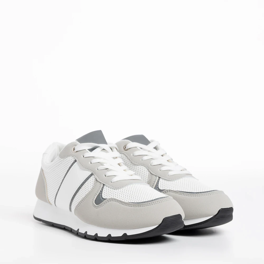 Мъжки спортни обувки бели със сиво от текстилен материал Lorenzo