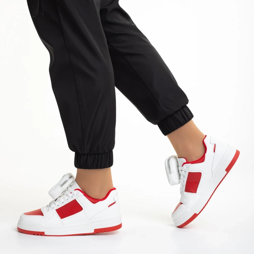Дамски спортни обувки бели с червено от еко кожа Inola