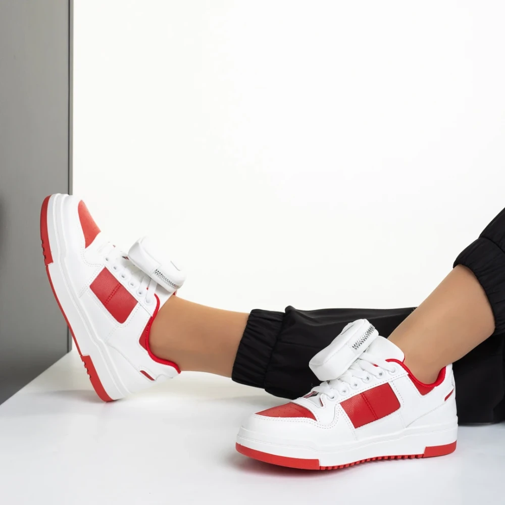 Дамски спортни обувки  бели с червено  от еко кожа Inola
