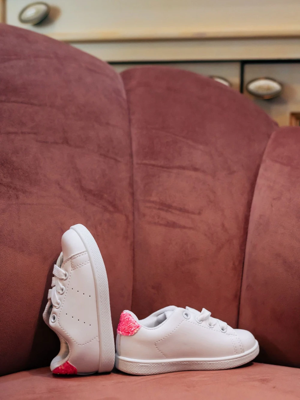 Детски спортни обувки бели със зелено от еко кожа Frost