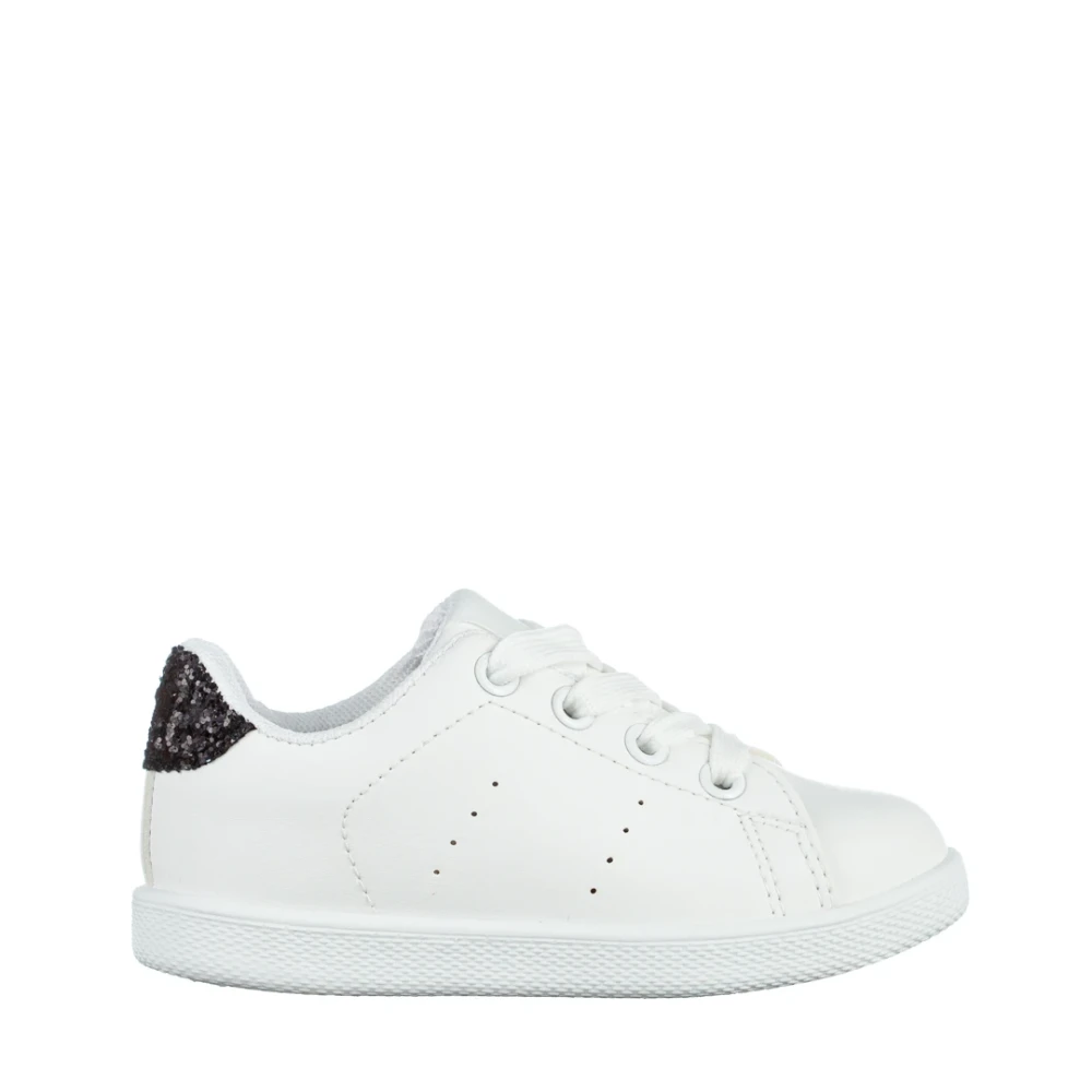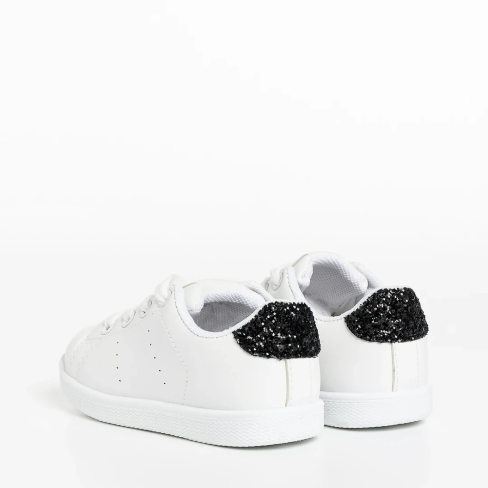 Детски спортни обувки бели с черно от еко кожа Ponty