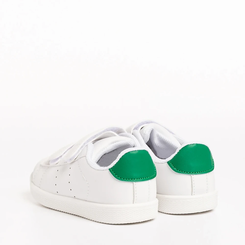 Детски спортни обувки бели със зелено от еко кожа Barney