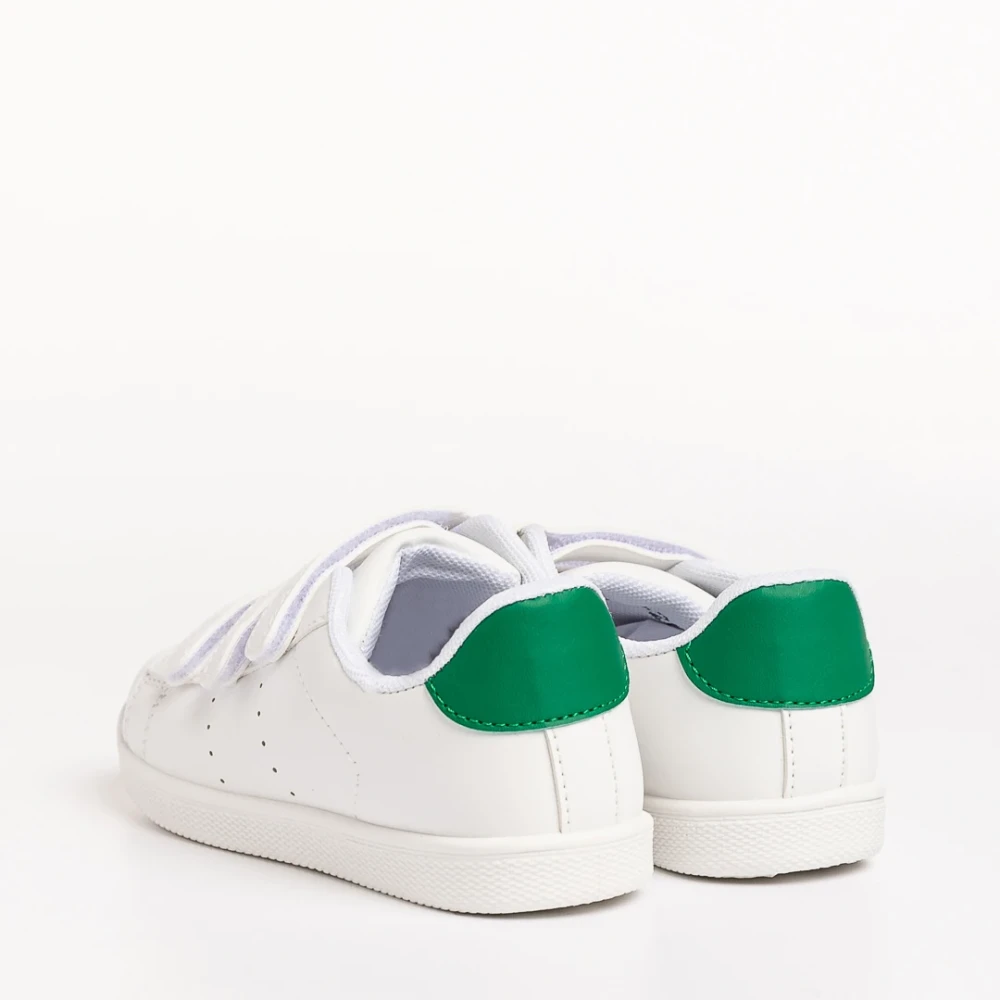 Детски спортни обувки бели със зелено от еко кожа Barney